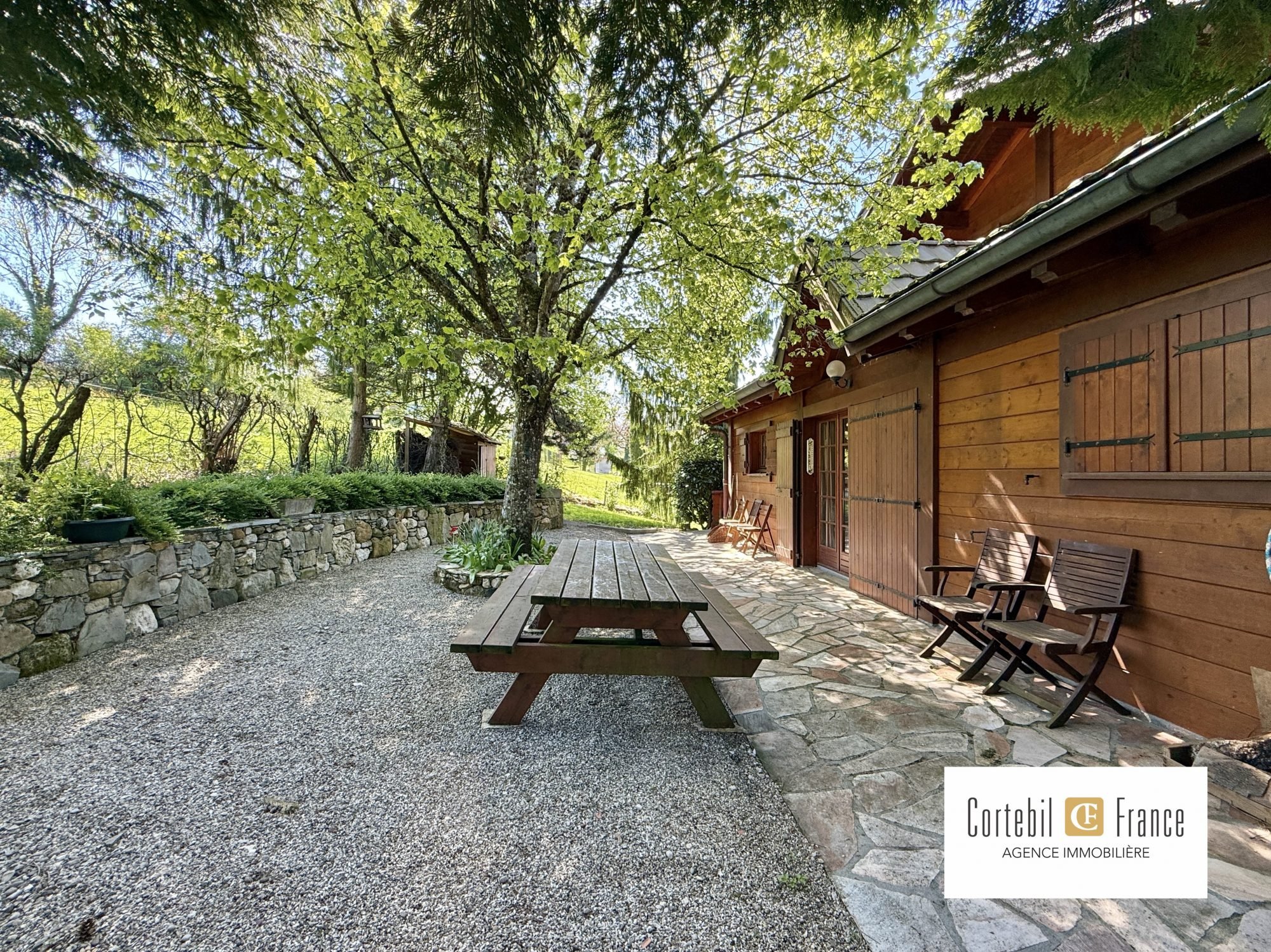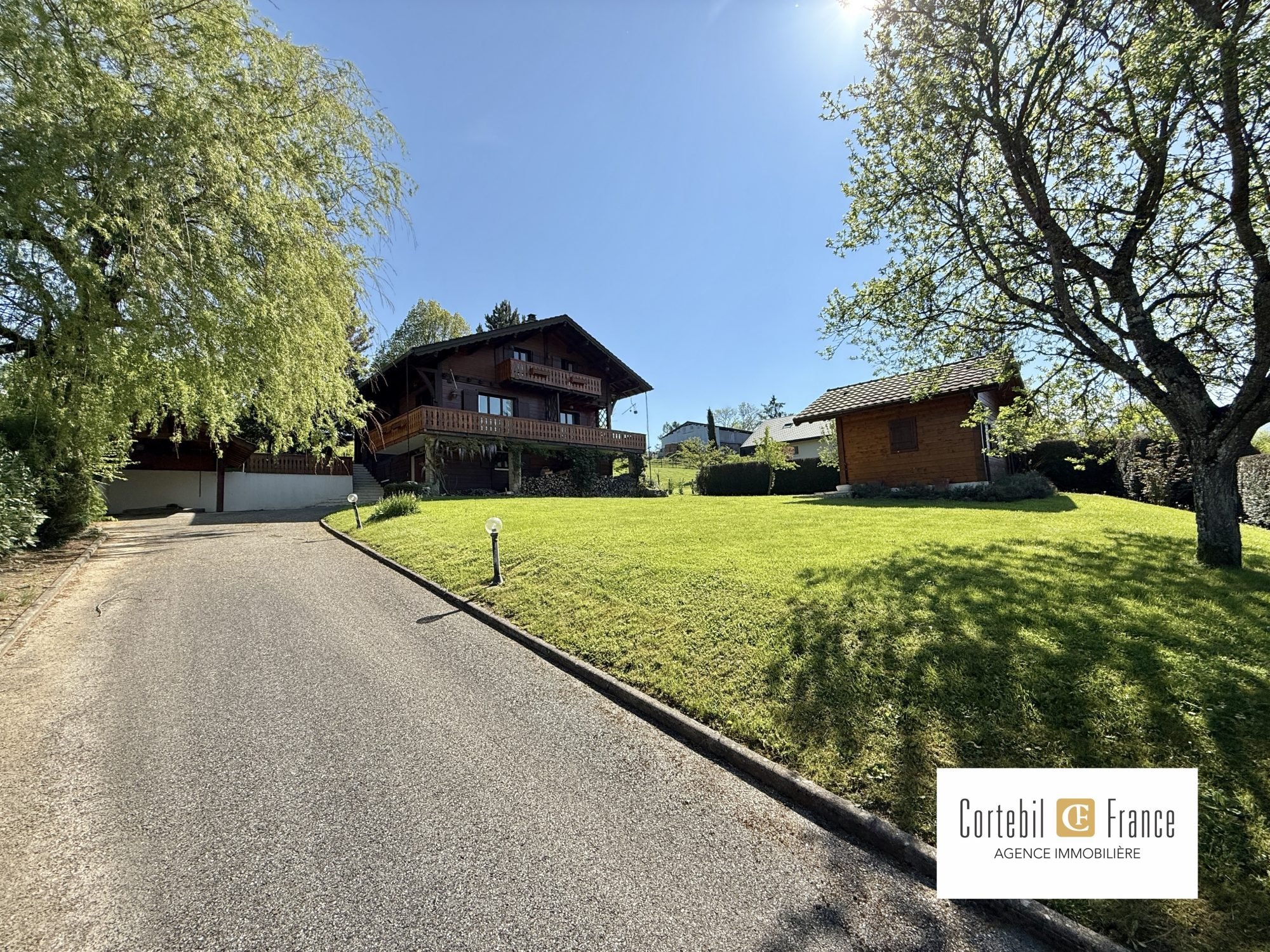 Cruseilles - Chosal - Proche Annecy-Genève - Chalet 8 pièces - 5 chambres - 248 m2 utiles - 166 m2 habitables - Sous-sol de 97 m2 - Terrain de 1296 m2 - Calme et tranquillité - Découvrez chez Cortebil France ce joli chalet de 1987, situé à 5 mn de Cruseilles dans le hameau de Chosal proche des Usses et de l'axe Annecy-Genève. D'une surface utile de 248 m2 et 166 m2 habitables, il dispose de 8 pièces principales et est composé comme ceci : - REZ : salle à manger, cuisine, salon, une chambre, une salle de douche, couloir, WC indépendant. - 1ER : bureau sur mezzanine, 3 chambres, une petite salle de douche avec WC. - SOUS-SOL : une chambre, une buanderie avec douche, une cuisine d'été, une grande cave et un garage. A l'extérieur, vous trouverez un grand terrain de près de 1300 m2, avec diverses terrasses, un abri jardin et un abri voiture. Pour plus d'informations : Agence CORTEBIL FRANCE Anthonin THOMASSON